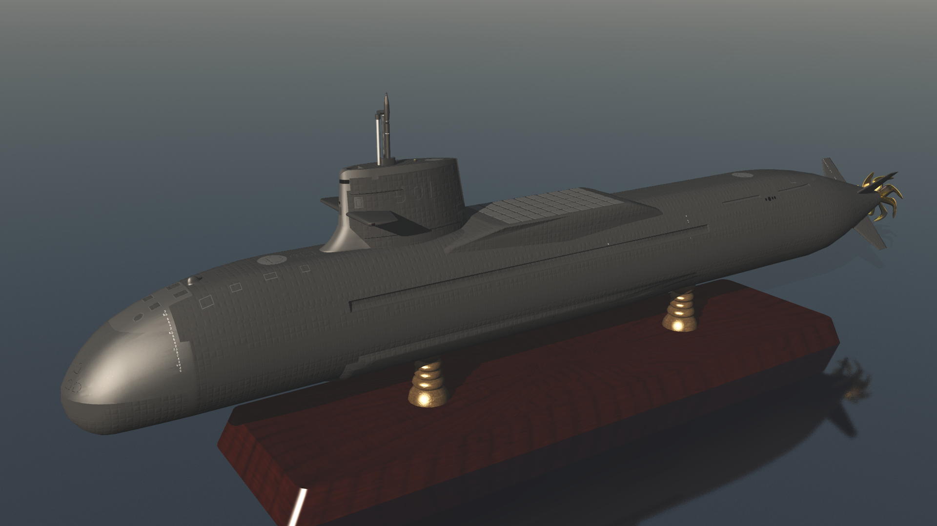 このCGの潜水艦は筆者が以前作成したもので、「そうりゅう型潜水艦」を改造した“ミサイル潜水艦”である。