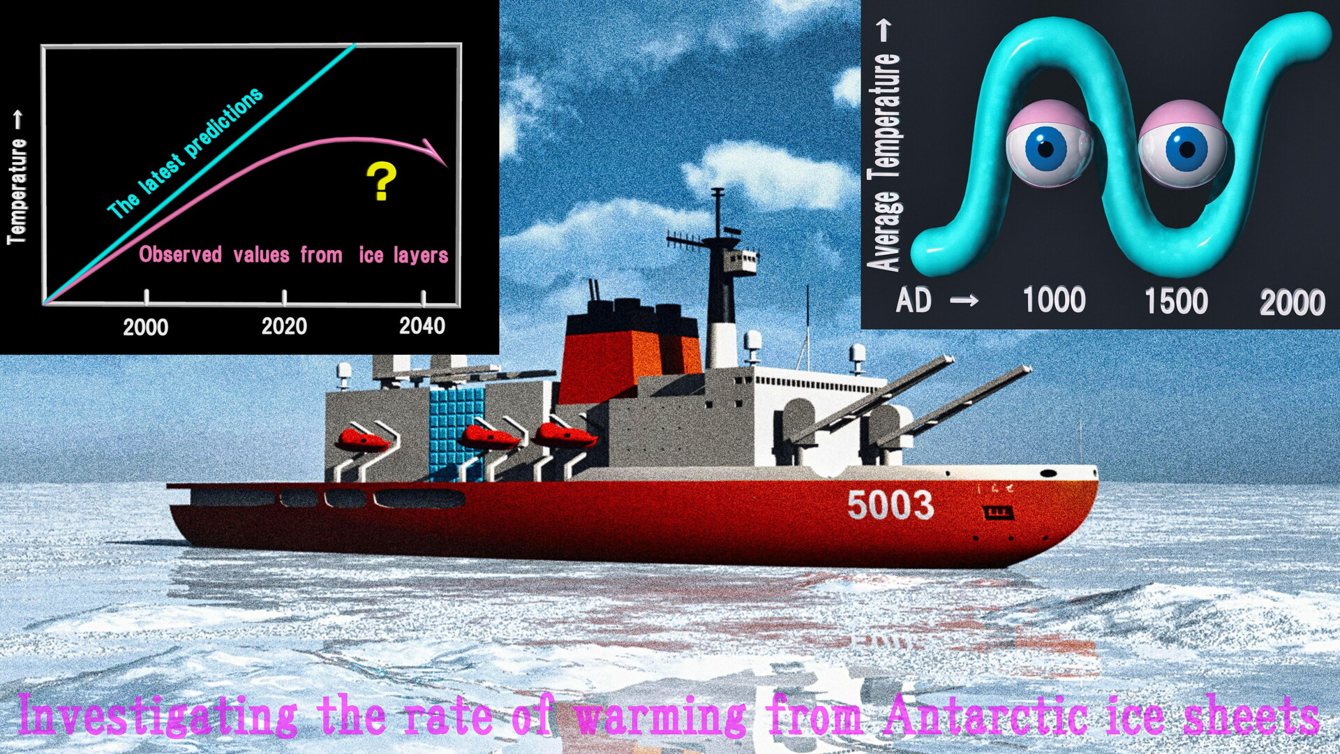 現在、日本では南極の「昭和基地」で実際の地球気温の変化を氷床を採取し分析する方法で研究している。