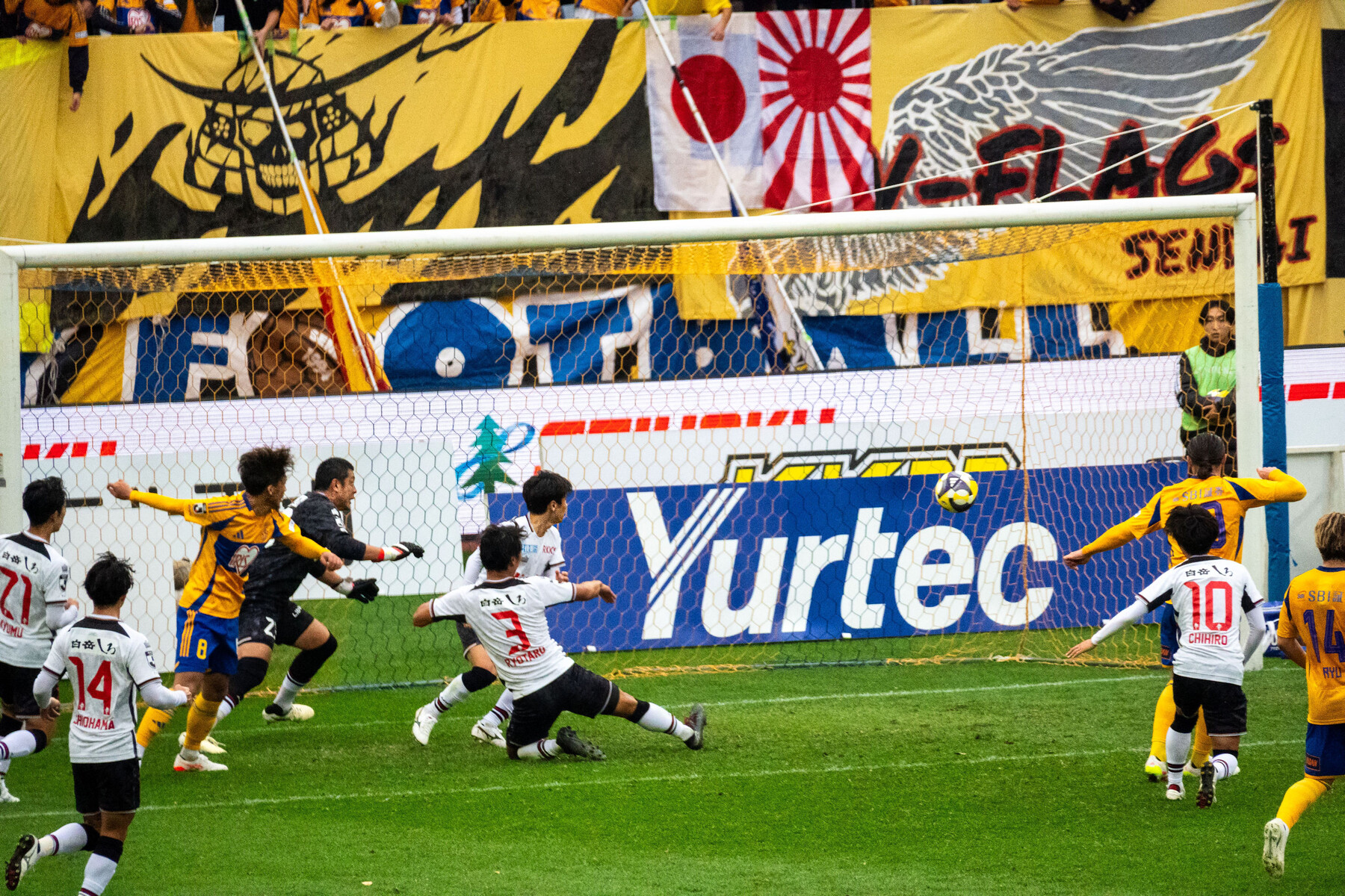 ゴール!ベガルタ選手とユアスタ劇場はこの会心のゴールで、重苦しかった試合展開から解放された。