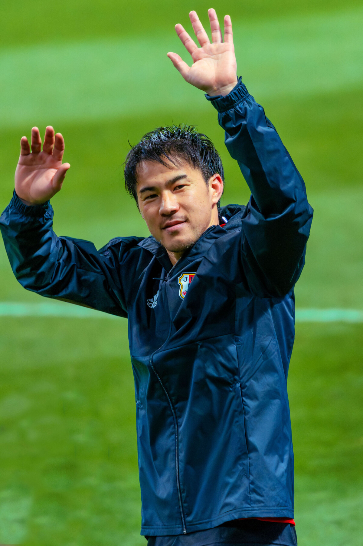ゴールを挙げた岡崎慎司選手です。岡崎選手がカメラを構えた僕を見つけてカメラ目線をくれています。